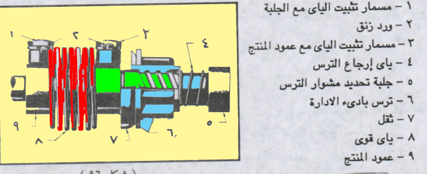 البنيون وتعشيقه مع ترس الحدافة عن طريق ذراع التعشيق وفى نفس الوقت يقوم بتوصيل